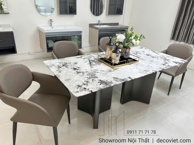 Bàn Ăn 6 Ghế 2681S Bàn 1.8*0.9*0.75m, bàn chân sắt mạ inox, mặt đá tự nhiên.