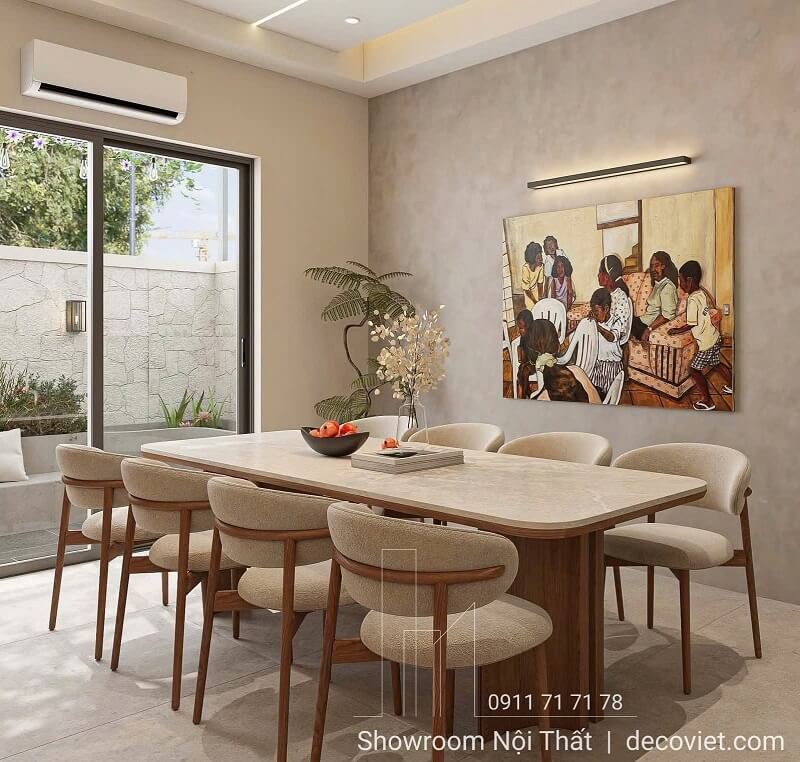Bàn Ăn 8 Ghế Gỗ Hiện Đại 2690S Bàn m, Chân gỗ mặt đá cao cấp..