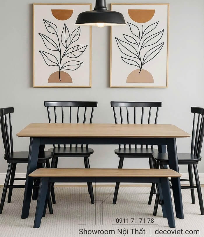 | Bàn Ăn Gỗ Me Tây 1915S Bàn m, chân sắt mặt gỗ cao cấp.