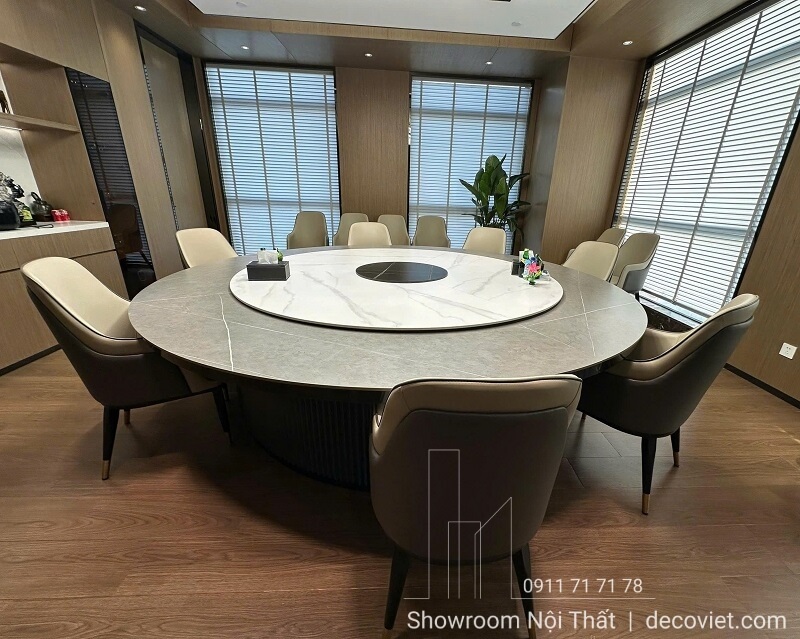 Bàn Ăn Tròn Xoay Lớn 14 Người 2676S Bàn m, bàn gỗ mặt đá.