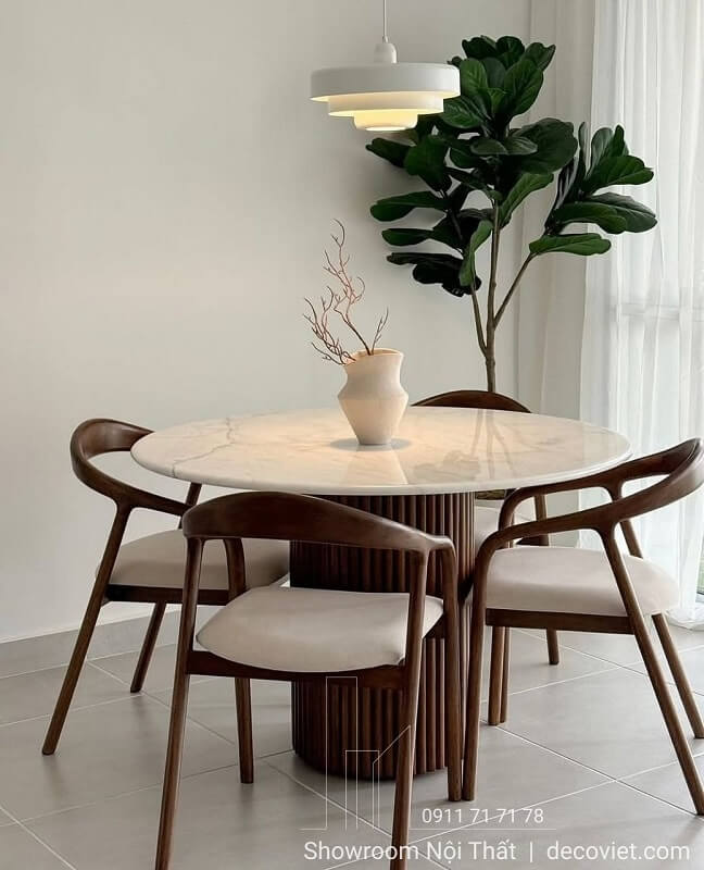Bàn Tròn To 20 Ghế 2129S Bàn m, bàn chân gỗ, mặt đá cao cao cấp.