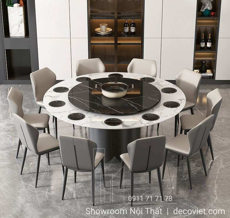 Giá trọn bộ 14 ghế: 0đ | Bàn Ăn Tròn 12 Người Cao Cấp 2675S Bàn m, bàn gỗ mặt đá.