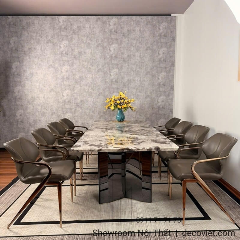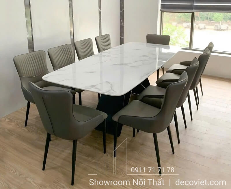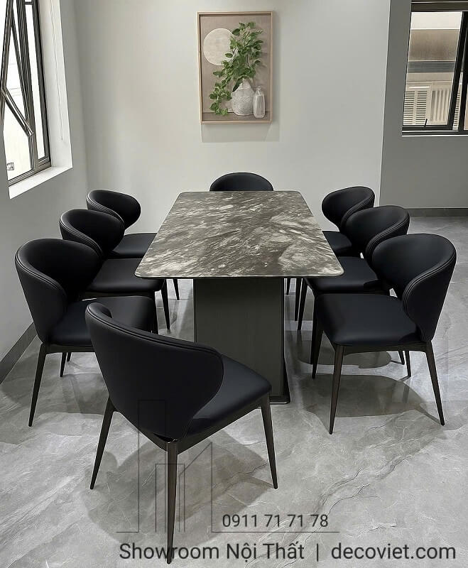 Giá trọn bộ 8 ghế: 0đ | Bàn Ăn 10 Ghế Đẹp Hiện Đại 1913S Bàn 1.5m, chân sắt mặt đá cao cấp.