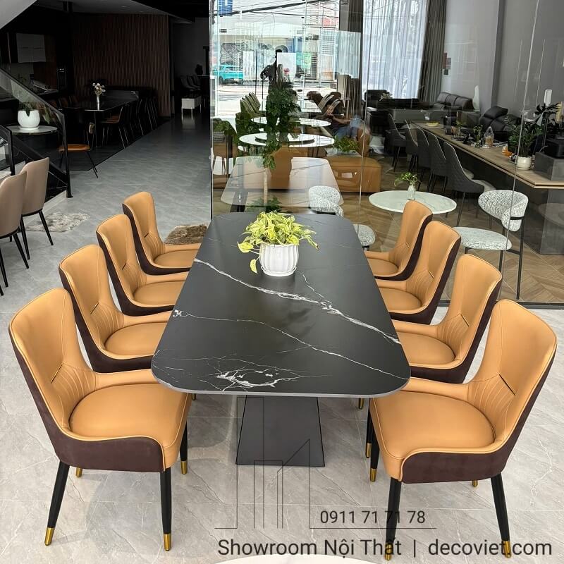 | Bộ Bàn Ăn 8 Ghế Cao Cấp 2499S Bàn m, Chân sắt mặt đá cao cấp.