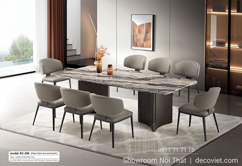 Bàn Ăn 8 Ghế 2477S Bàn m, Mặt đá cao cấp.