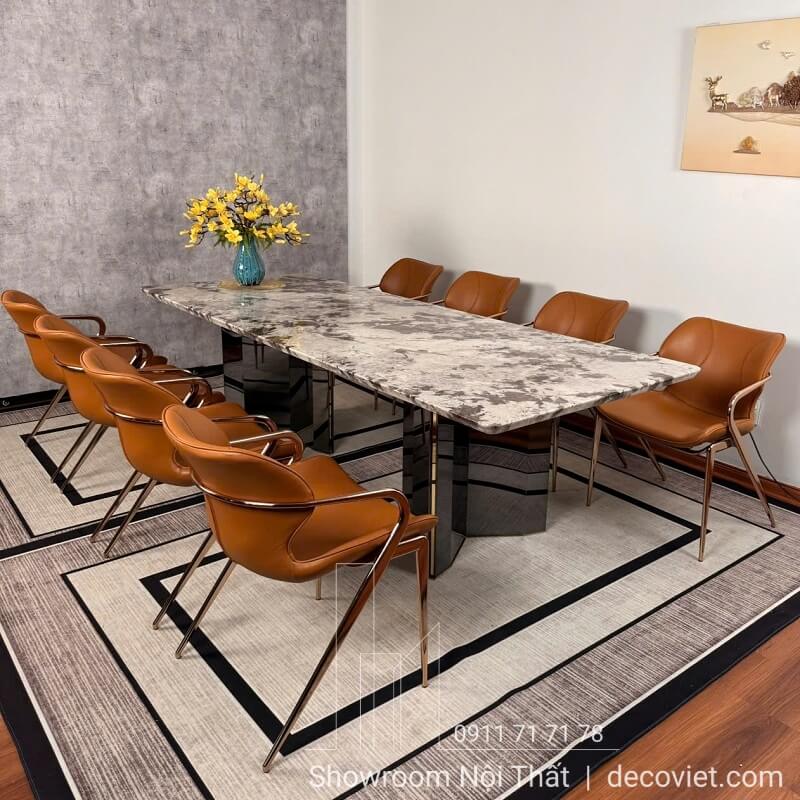 Bàn Ăn Mặt Đá 8 Ghế Nhập Khẩu 2538S Bàn m, chân sắt mặt đá cao cấp.