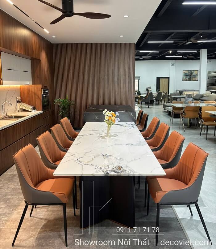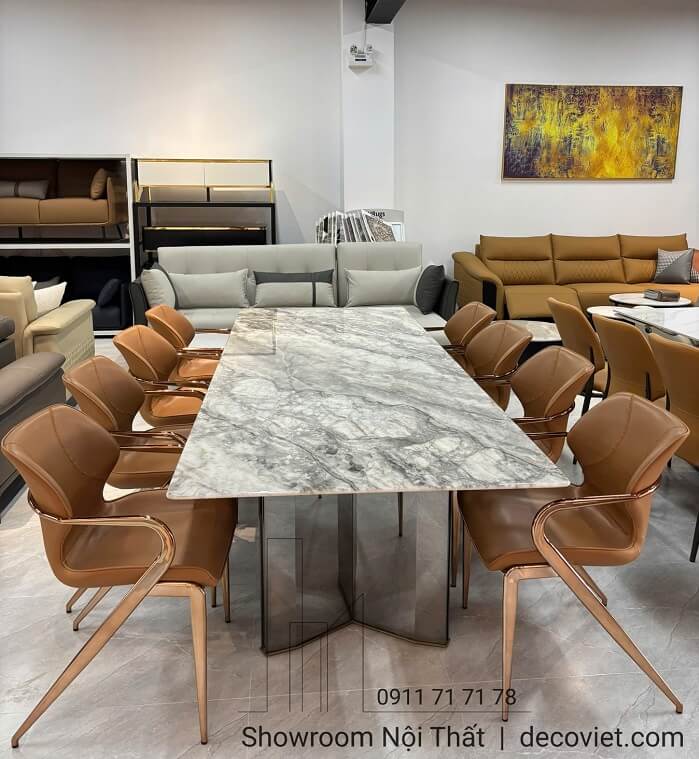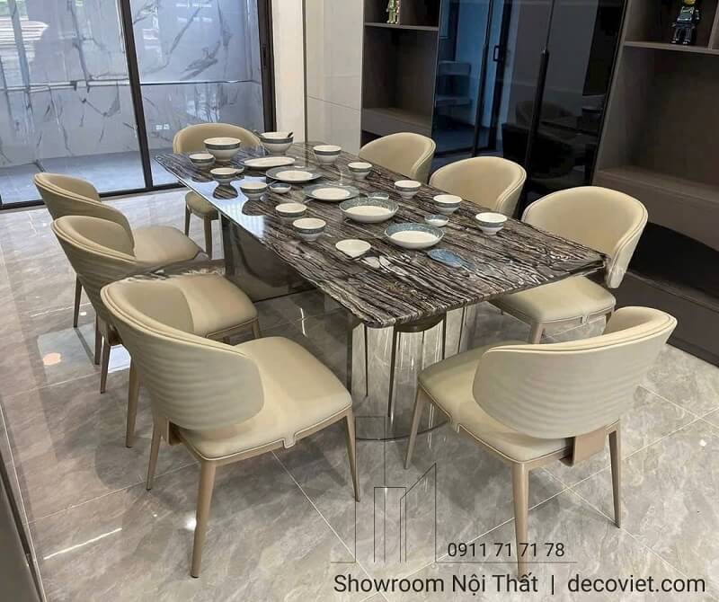 Bộ Bàn Ăn Cao Cấp 8 Ghế 1378S Bàn m, chân sắt mặt đá cao cấp.