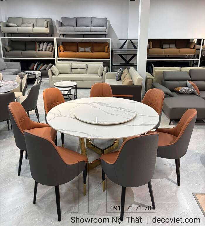| Bàn Ăn Tròn 8 Ghế Hiện Đại 1380S Bàn 1.33*0.75m, Chân sắt mặt đá ceramic cao cấp.