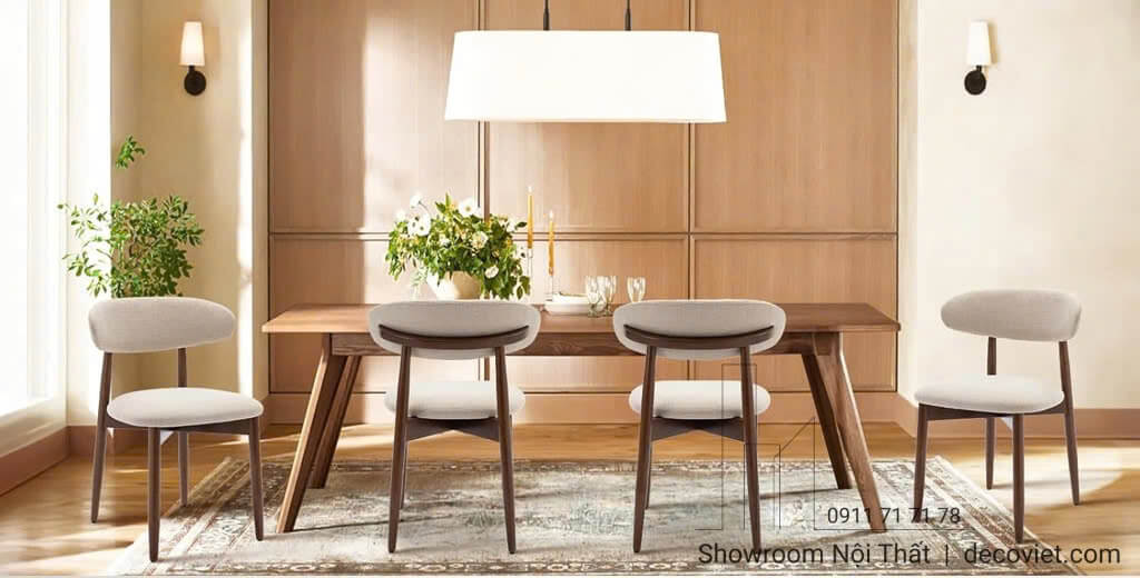 DecoViet luôn có sẵn hơn 500+ mẫu ghế bàn ăn tại showroom và kho. Anh/chị có thể đến xem trực tiếp hoặc nhận tư vấn qua Zalo – Facebook – Website.